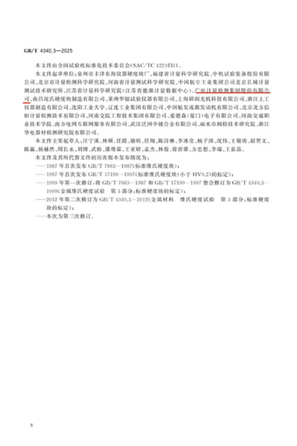 由國家市場監督管理總局、國家標準化管理委員會發布,廣電計量參編的國家標準《金屬材料 維氏硬度試驗 第3部分:標準硬度塊的標定》(GB/T 4340.3-2025),已于2025年03月28日正式發布,2025年10月01日起正式實施。